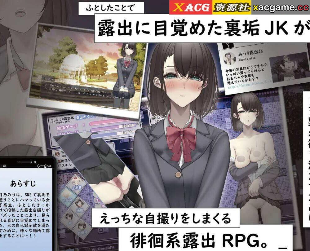 在各种地图上进行暴露行为,并将其情况发布到社交网络上,以吸引更多的关注者,这是一款漫游型的暴露RPG。